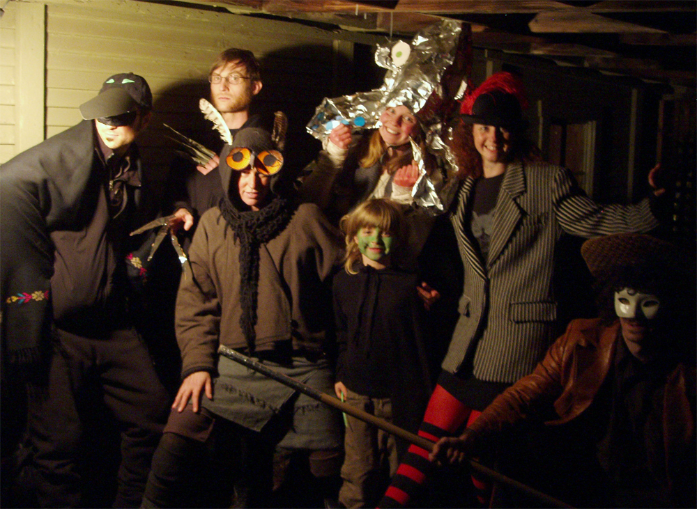 Left to right: Crow, Wolverine, Owl, Goblin, Squid (aka Octipii Vancouver), Jester, and Zoro’s cousin the lightening tamer. I am including this as my creative endeavour for the day, as I put together the Owl costume in a few minutes before we went out, after spending the day finishing previous projects and completing previous posts on this blog.