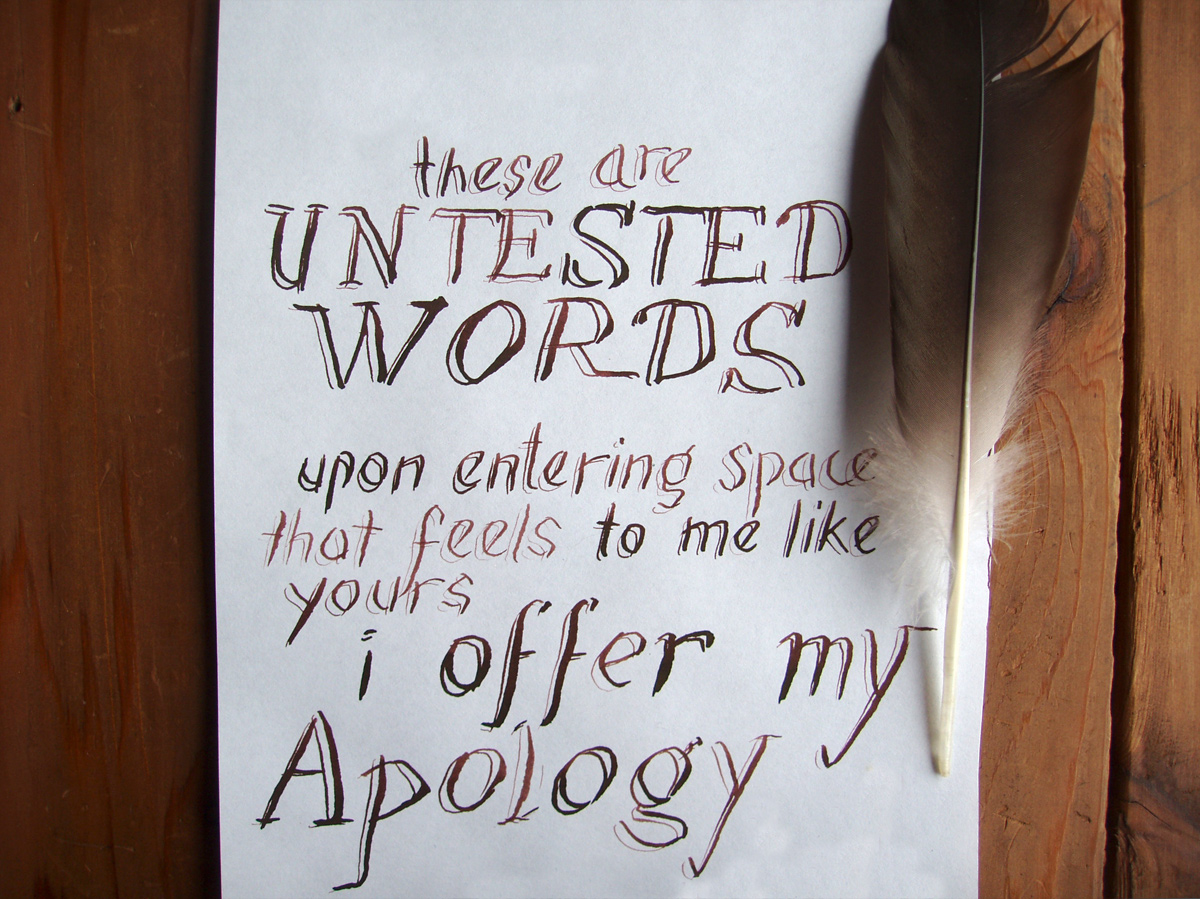 art, text thirty three : apology Posted by RedSara on December 15, 2011 i used the quill pen i made to invoke this drama… tho sincerely felt. FRIENDS don’t go thinking there is anything wrong in my immediate relationships! these words address an old rift between past allies wounds healed over tho scarred for some endure Tweet Click to email a link to a friend (Opens in new window) Email Like Loading... Related