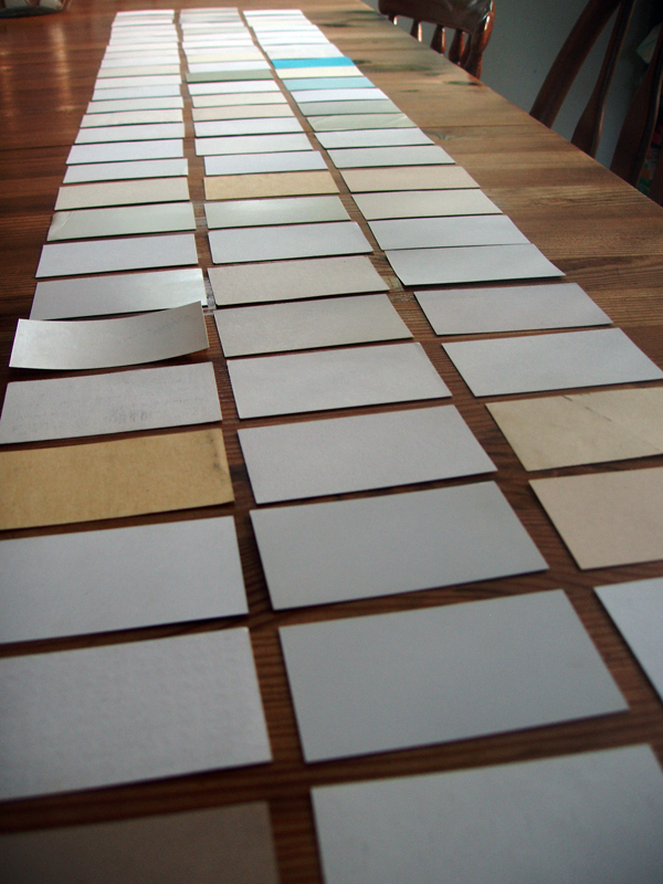 cards painted white as creative inspiration tool