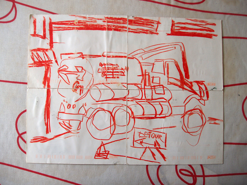 “work men in the AM, but not just that. ¡A PULSATING VACTOR 2100! outside my very window. i started rushing about. breathing. flinging limbs. The meaning of life. So clear as rendered in red china marker on the back of an old poster. Tear up the street. Suck shit up. wake the world. Look at Vactor. Pulse. Throb. Tubes and containment vessels. i hold your shit.”