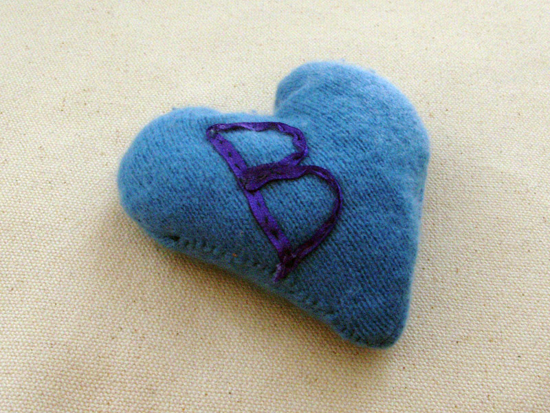 I sewed her this blue fuzzy heart filled with lavender   harvested from our garden in vancouver   the letter B embroidered on it is slightly raised so betty can feel it with her fingers   her eyes don’t work anymore but her memories sure do!